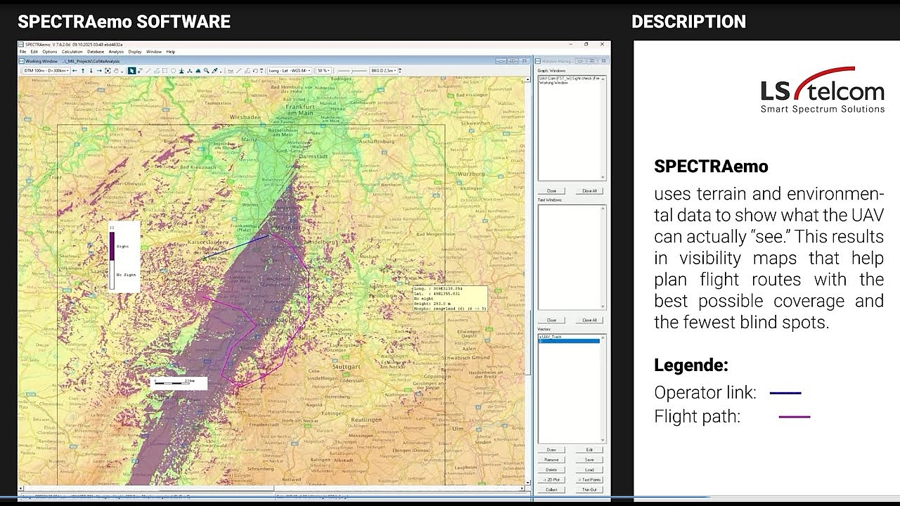 SPECTRAemo provides a focused planning environment for electromagnetic operations, helping military users assess radio coverage, anticipate interference, and make informed spectrum decisions through high-performance offline analysis. With efficient channel assignment and clear visibility of the electromagnetic environment, SPECTRAemo strengthens operational readiness and supports spectrum superiority across mission scenarios.